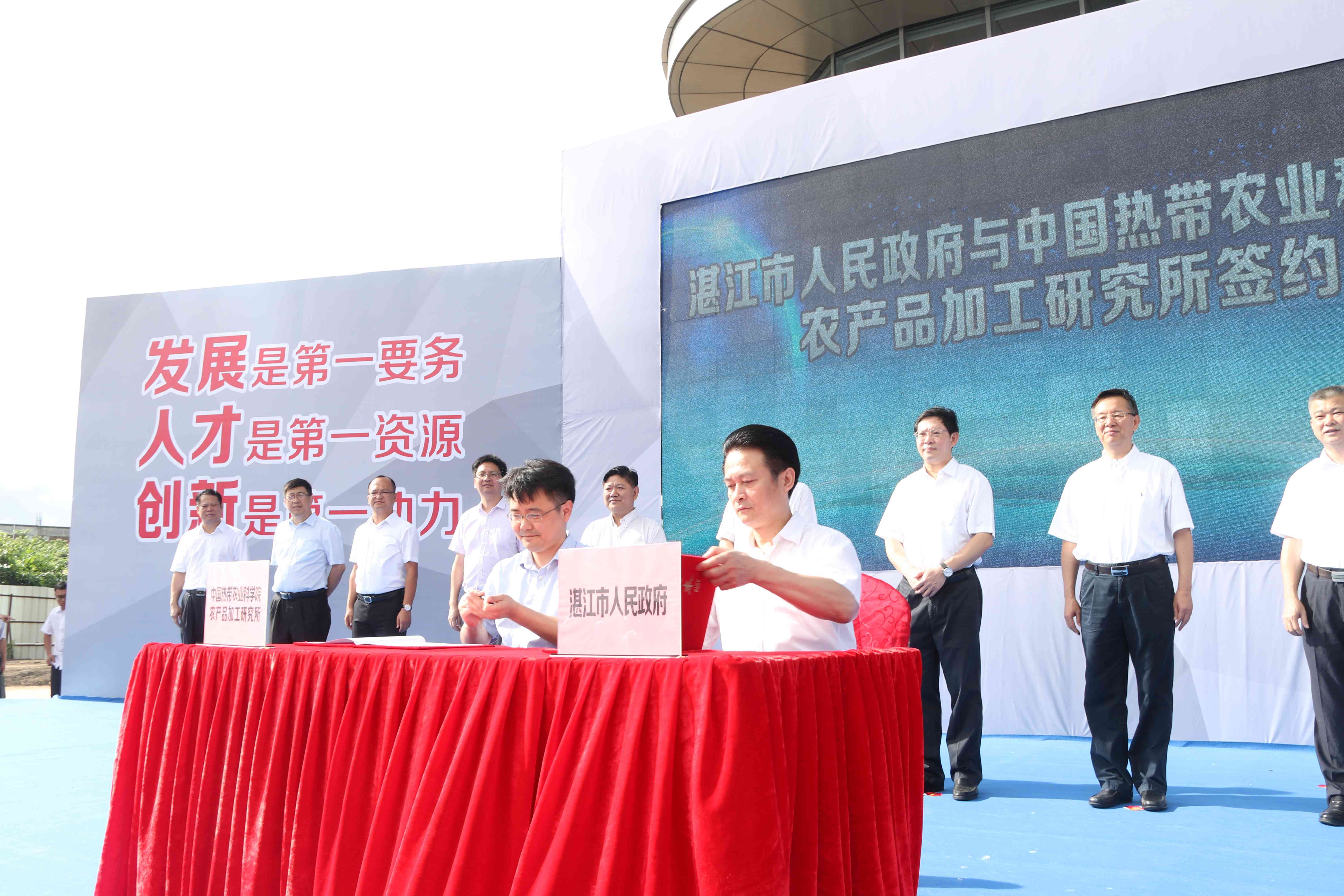 湛江市委书记郑人豪、市长姜建军、副市长欧先伟及市科技局、农业局领导出席了签约仪式。